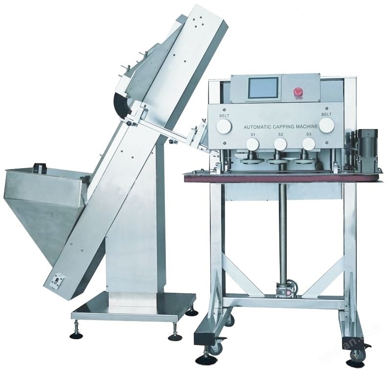 1.全自动核心机型:XG-300 系列整合理盖、落盖、输瓶、旋盖、剔除全流程,采用塑料平顶输送链与自动升降机构,可与灌装、贴标设备联动成线,广泛应用于食品饮料、医药日化的规模化生产。其三组旋盖轮设计通过变频独立控制,能适配螺旋盖、防盗盖、防童盖等多种盖型,恒扭矩旋盖头可精准调节压力,避免瓶盖损坏与内塞磨损。